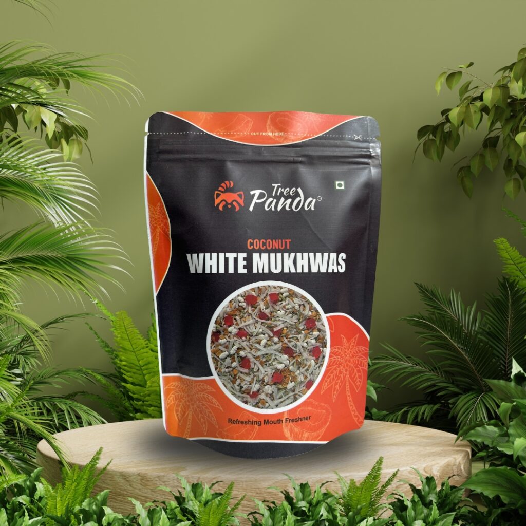 Aromatic and delightful Coconut White Mukhwas created as perfect after-meal mouth freshenerwith digestive aid. A unique blend combines the natural sweetness & crunch of a roasted coconutflakes mixed with roasted saunf, roasted coriander seeds and sweeteners to create a refreshing andflavourful experience.